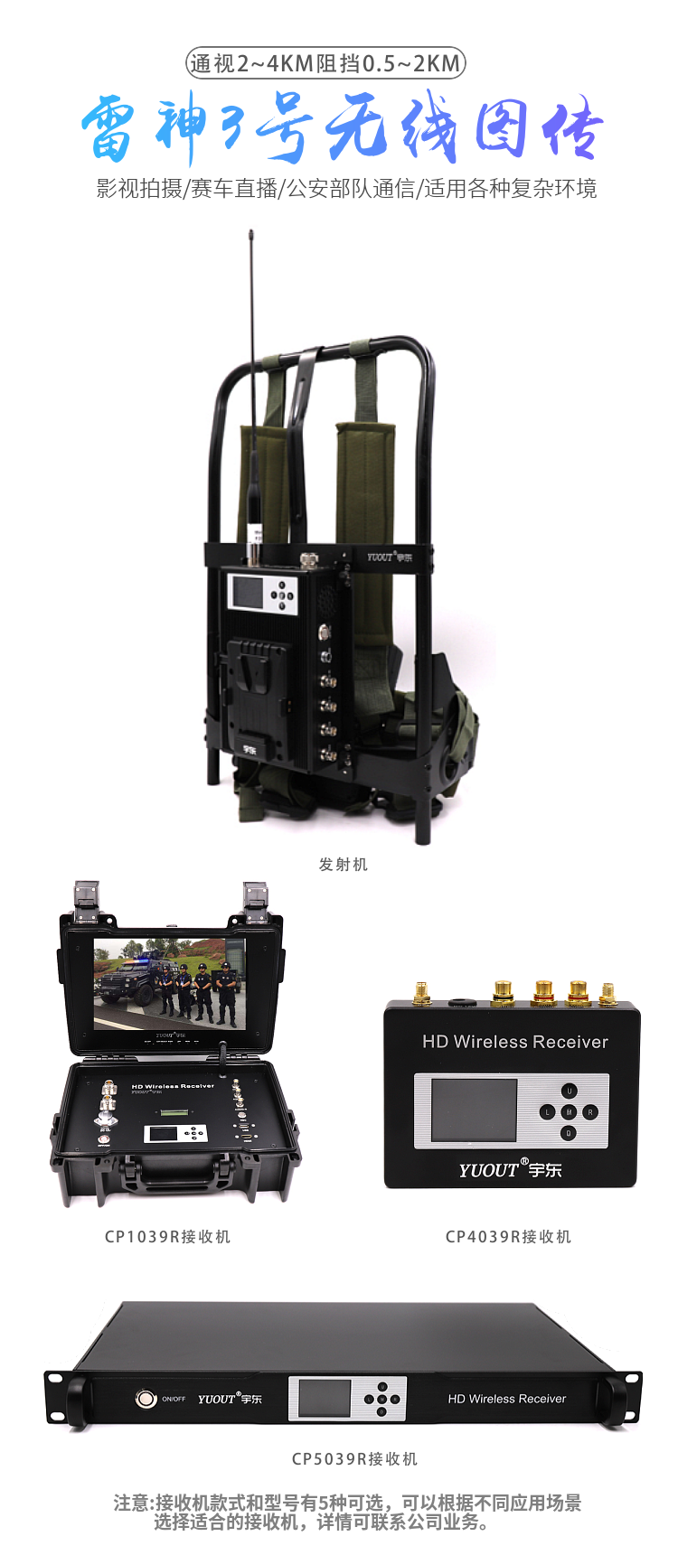 雷神3號(hào)無(wú)線圖傳采用宇東自主研發(fā)的非視距無(wú)線技術(shù),300MHz~4400MHz 頻率,可訂制無(wú)線頻段,支持3G/HD-SDI最高1080p60穩(wěn)定傳輸視距1-2KM,最遠(yuǎn)可達(dá)4000米(需要改裝天線),非視距距離200~2000米(具體視實(shí)際應(yīng)用環(huán)境而定)。(環(huán)境復(fù)雜、可穿墻、人多、車多、樹多及障礙物多的地方),主應(yīng)用于廣播電視臺(tái)、影視拍攝、教育直播、大型演唱會(huì)、電影電視制作、體育轉(zhuǎn)播、社會(huì)新聞、空中實(shí)況、演播室、海事、 交警、人防應(yīng)急、城管執(zhí)法、三防應(yīng)急等方面。系統(tǒng)為純硬件連接,即插即用。